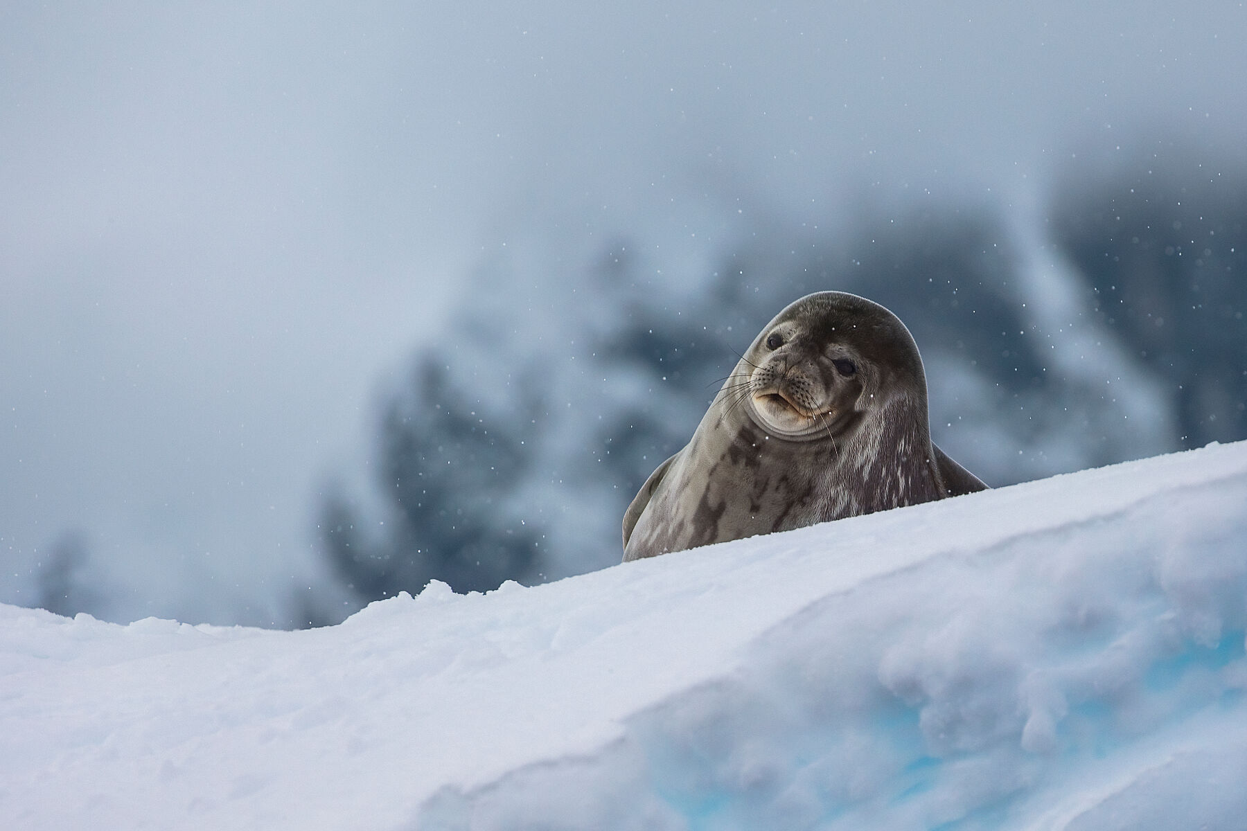 A weddell seal chilling on an iceberg off Danco Island, Antarctica