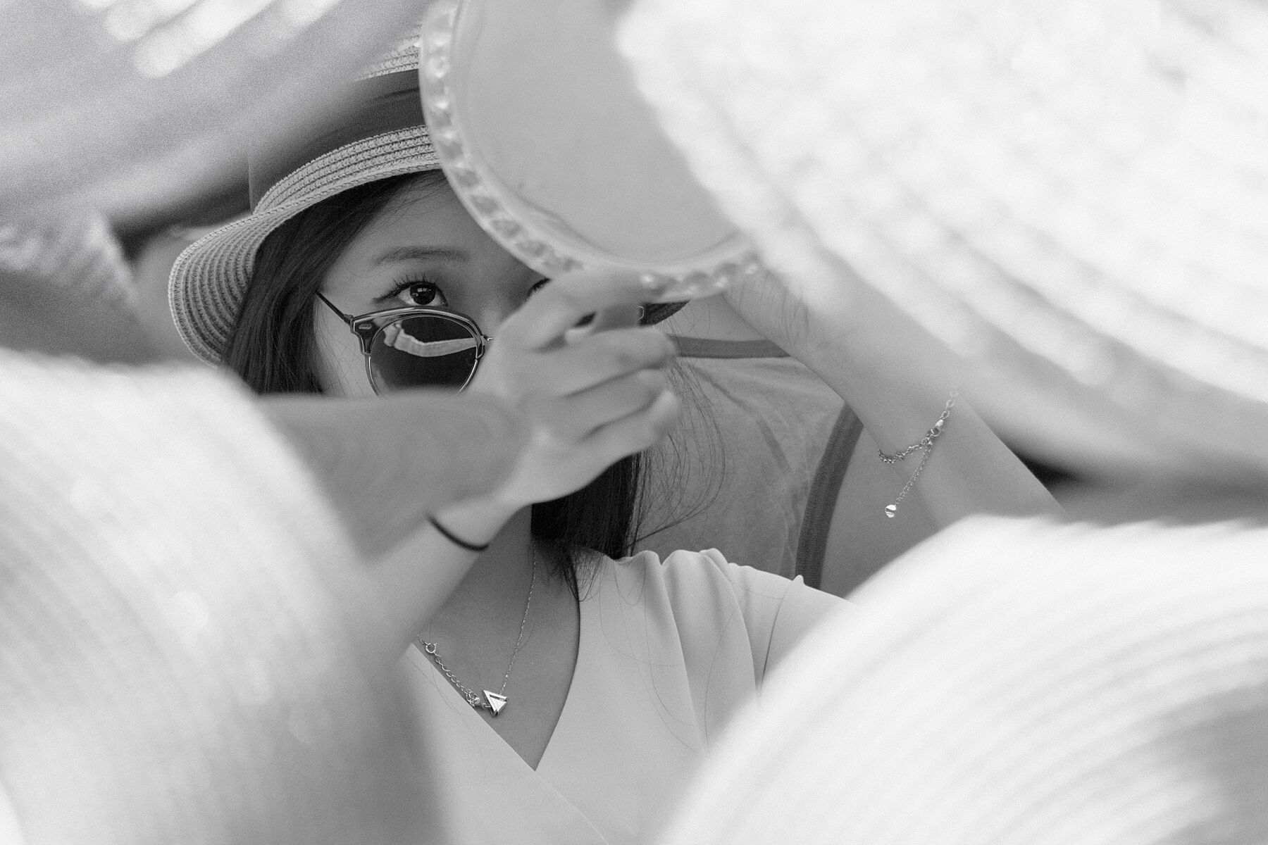 Hat shopping in a street market in Kota Kinabalu, Malaysia, Borneo
